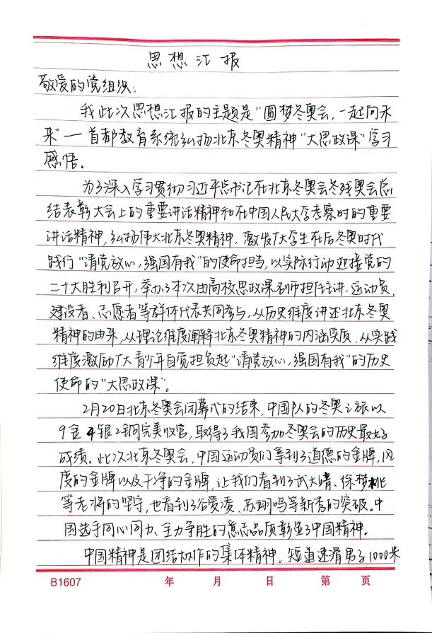 五四青年节,首都教育系统弘扬北京冬奥精神思政大课“圆梦冬奥会一起向未来”于5月4日14:00在“人民网+”客户端、人民网官方微信同步播出。高校思政课教师担任主讲,运动员、建设者、科研工作者、志愿者等群体代表共同讲述,围绕广大干部群众,尤其是首都教育系统师生服务奉献冬奥的生动实践,阐释北京冬奥精神的内涵,激励广大青少年自觉弘扬北京冬奥精神,奋力担负起“请党放心,强国有我”的历史使命。 为深入学习贯彻习近平总书记在北京冬奥会、冬残奥会总结表彰大会上的重要讲话精神和在中国人民大学考察时的重要讲话精神,进一步弘扬“北京冬奥精神”,国产自拍 本科生党支部组织党员和入党积极分子通过线上学习讨论和提交思想汇报等方式,学习“圆梦冬奥会一起向未来”思政大课。